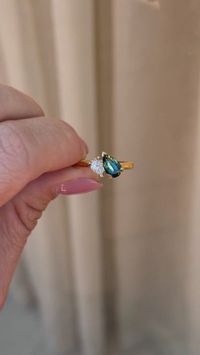 1.17ct Australian Sapphire Pear Toi et Moi Natural Diamond Ring - OLA